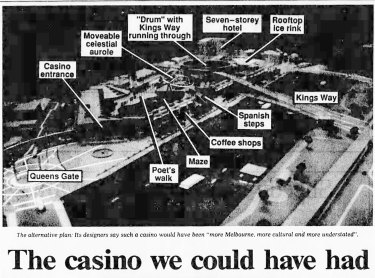 Alternative plans for a casino rejected by the state government.Credit:The Age, 1993